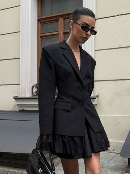 Product Name: Elegant Lace-Trimmed Black Blazer
