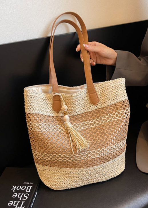 Step out in style, no matter where your day takes you. This large capacity straw tote is the ultimate chameleon—effortlessly transitioning from your office commute to weekend brunch, and from a shopping spree in the city to a barefoot walk on the sand. Its soft neutral palette pairs beautifully with any color scheme, while the woven straw texture instantly adds a touch of vacation charm. Whether paired with a linen sundress or a sleek blazer, this bag elevates your look with ease.