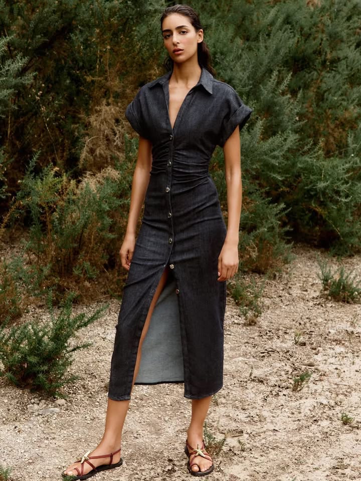 This button-down bodycon dress is perfect for various occasions: from the office to casual outings or evening parties, it effortlessly exudes style